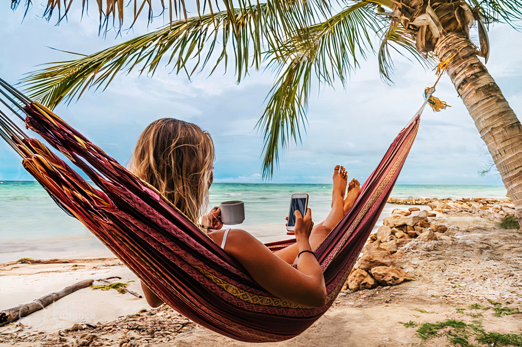 A peaceful and safe place with less tourism, a chilled vibe on a white sand beach.